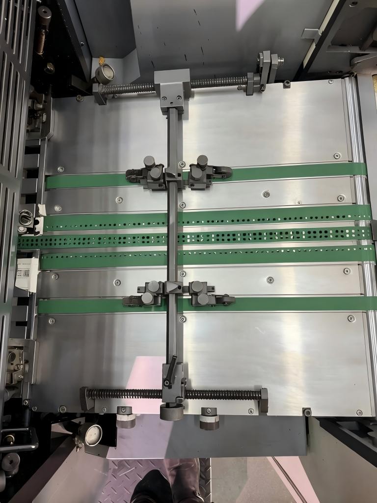 9) ప్రెస్‌లో వాక్యూమ్ సక్షన్ పేపర్ ఫీడింగ్ టేబుల్‌కు నిరంతర పేపర్ ఫీడింగ్ సిస్టమ్ ఉంది, దానిపై మూడు తిరిగే పేపర్ ట్రాన్స్‌పోర్టింగ్ బెల్ట్‌లు ఇన్‌స్టాల్ చేయబడతాయి. ఇటువంటి కాగితం రవాణా వ్యవస్థ విస్తృత శ్రేణి మందం కలిగిన వివిధ రకాల కాగితాలను విశ్వసనీయంగా రవాణా చేయగలదు.